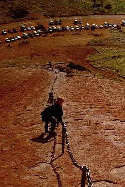 A bus is available to take you into the park on your own . Leif and William took it to the base of the climb on our third day while Samantha and I relaxed at the resort.. When they arrived the climb was closed due to high winds at the summit so they walked around the base (9km). When they get back, around 3 hours later, the climb was open and William was anxious to ascend. Leif and William made it the first third of the way up the steep chain assisted section and another third of the way afterward. William decided it was time to go back down before they completed the walk when the wind started picking up again.