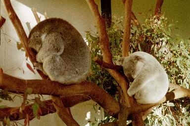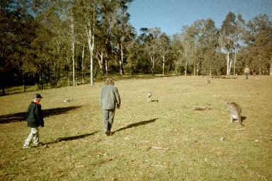 This park started in a back yard but has grown to be a large display of Australian animals. Kangaroos, emus, mocking birds, kookaburras, pigeons and peacocks were free to roam many of the paths. The animals were friendly, the kookaburra let me pet him for quite a while. There were rows and rows of bird cages, it took me quite a while to find the budgies and cockatiels. Samantha sought out the dingos. William made sure his "passport" was stamped at all the areas.