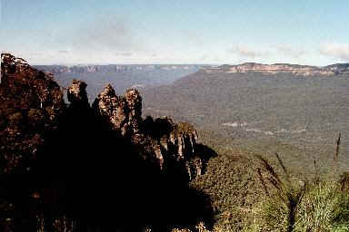 We then drove through the Blue Mountains. Just looking out the window provided ample scenery, but we made two scenic stops anyway. One was to see the three sisters and another to see Australia's "Grand Canyon" Finally John, our guide, put the van into 4-wheel drive and we went to an undeveloped lookout over some very bumpy roads to a very high rock cliff looking into the same valley. You could walk right up to the edge and look straight down several hundred meters