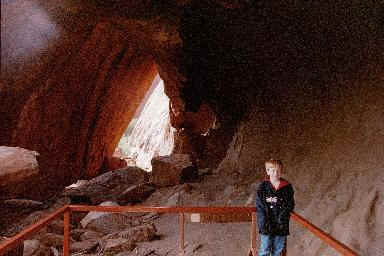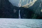 We took a large catamaran 16km up lake Te Anau to the entrance to the cave. The cave has a large, active river running through it. The tour guide ferries you across a section of the river and you then walk on catwalks over the river 100m into the cave past with waterfalls and rapids. The stair case that goes up around one of the falls is particularly impressive. The second boat is moored next to a small waterfall that has a rail across its top. After everyone gets into the small 12 passenger boat the guide turns off the lights and small bluish lights become visible. The guide stands and uses a chain mounted above to move the boat. As you move into the main cave the sounds of the river diminish and there is total silence. Speaking and photography (even without flash) is prohibited. The glowworms were very bright for us, indicating that they were very hungry. There is only one path in and out so you exit the way you came in.