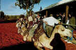 Riding a camel to watch the sun set over Uluru was not my idea, but the kids really enjoyed it. You are seated 2 per camel, heavier to the back. the camels are connected to each other using nose pegs. The most dangerous part is when the camel stands up or goes to its knees, the angle of it's back gets pretty steep. Before the ride we learned about camels and after we had snacks, including smoked camel.