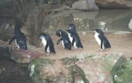 The Little blue Penguins spend days out at sea feeding. Once satiated they will return to the colony shortly after sunset. The Blue Penguin colony has lights on the beach to enable you to see the penguins, but they are not bright enough for photography and use of a flash is prohibited. Unfortunately I did not think in advance to load high speed film in my Nikon. There is a picture of some in the Featherdale Wildlife park in the Australia section.