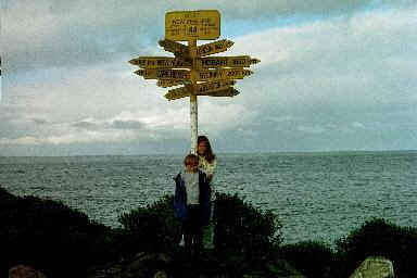 Bluff is the southern most point of the South Island. Beyond it lies Stewart Island and Antarctica. The sign post gives distances to various locations throughout the world.