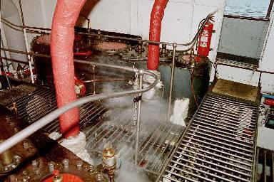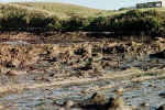 As we approached white Island on the PeeJay IV the most obvious feature is the plume of white that is rising from the island. This is what Captain Cook saw in the distance and why he named it White Island. Captain Cook however did not see what we were about to see as we walked into the crater of an active volcano. There is no dock, we are ferried to the island in an inflatable reminiscent of Cousteau's Zodiacs. After a walk across a narrow board and a climb over ash covered boulders we finally reach the remains of the abandoned sulfur grinding and separation facility. We have all donned hard hats, yellow for the tourists, pink for the guides, and have a gas mask hanging around our necks. There is no life except a bird colony we say on the rocks from the boat.