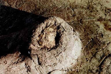 Finally we make our way back, following a different route. There is a small vent that we stop at to photograph it. The vent is yellow from the super in the steam. Around a bend is a larger vent which has large super crystals. Jeannie tells us that had not everything been covered in ash we would have seen more minerals deposits. Walking back we step around boiling mud and across the hot stream again. The guides wear shoes that have no metal because of the corrosive properties of the island. They still go through shoes fairly quickly.