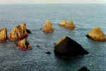 These are located on a beach about 40 miles north of Dunedin. While there are other examples of this phenomenon in the world, these are said to be the largest. They are nearly spherical and have been formed like pearls in loose sedimentary layers. The 2.5m diameter ones may have taken up to 7 million years to form. As the sedimentary formation is worn off by the ocean the boulders are exposed and washed by the ocean waves.